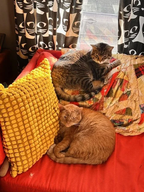 I work out of my house that I share with my two cats Oz and Peanut Butter Face who are in charge of my social media.
