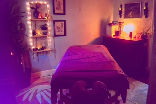 Located near KUMed easy highway access. Incense and twinkling “candle” lite, with lots of plants to filter out environmental toxins with bathroom available from massage room for tinkle breaks.